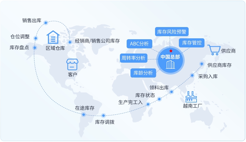 研發(fā)、銷售、供應(yīng)鏈、財(cái)務(wù)、生產(chǎn)運(yùn)營全場景業(yè)務(wù)流程,拉通全球產(chǎn)業(yè)鏈內(nèi)部的協(xié)同